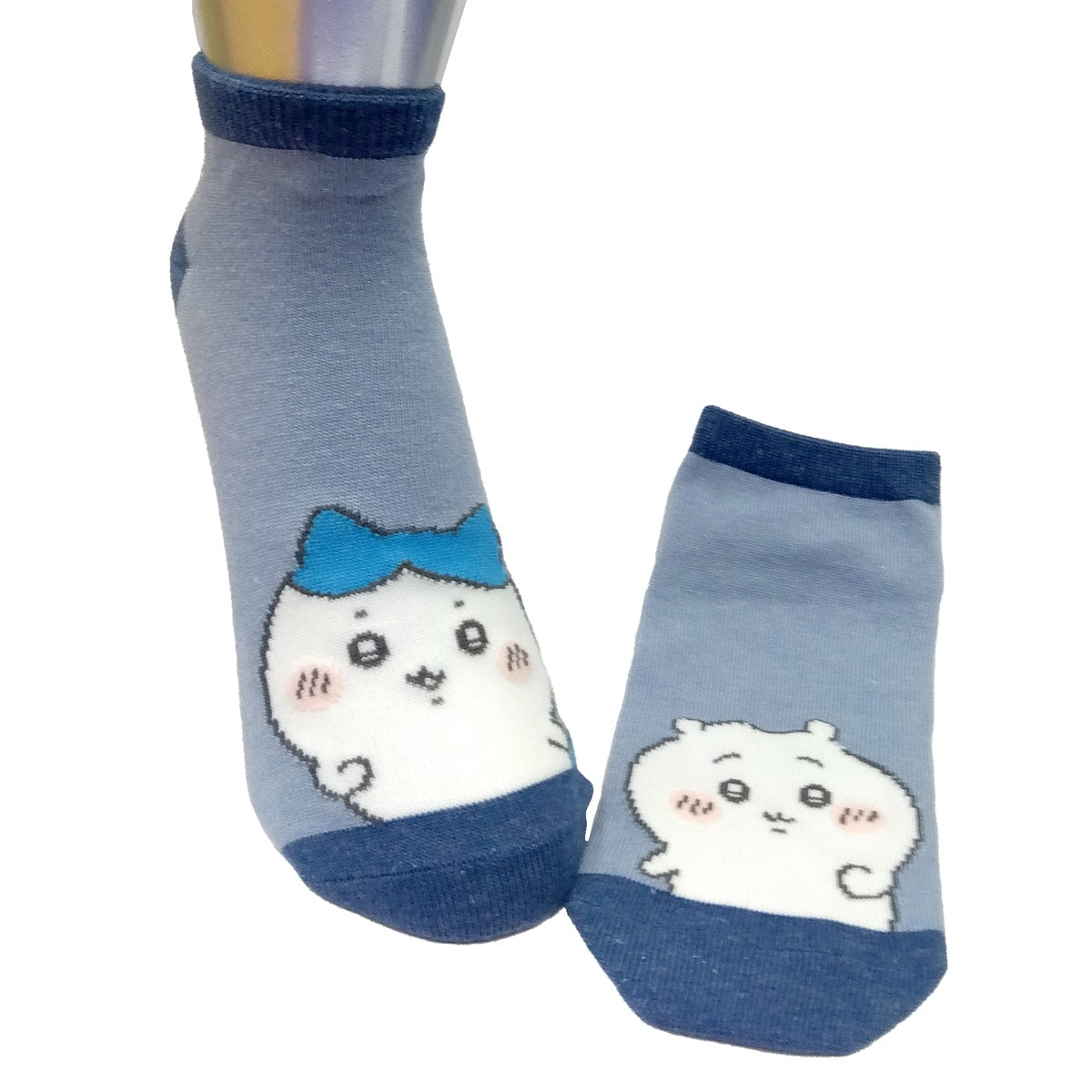 ちいかわとハチワレの左右で柄が異なるデザインがかわいい、スニーカー丈ソックスです!