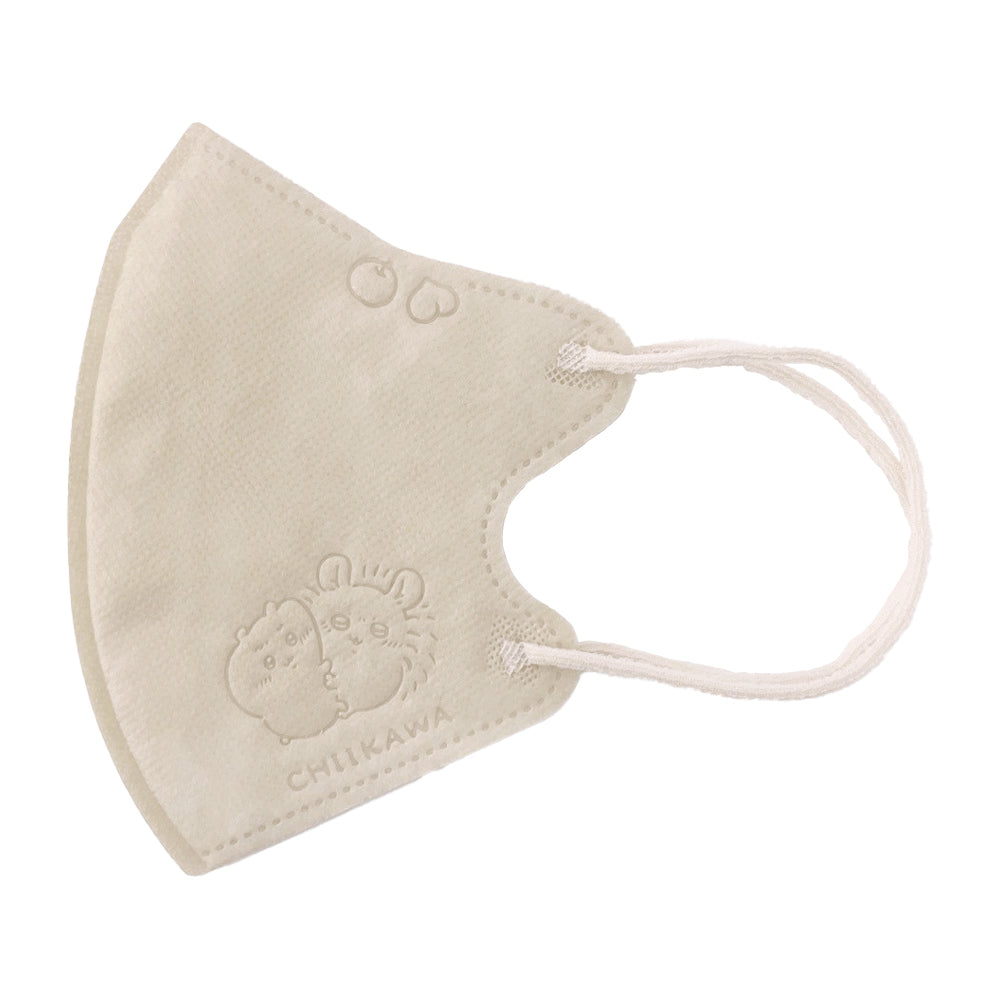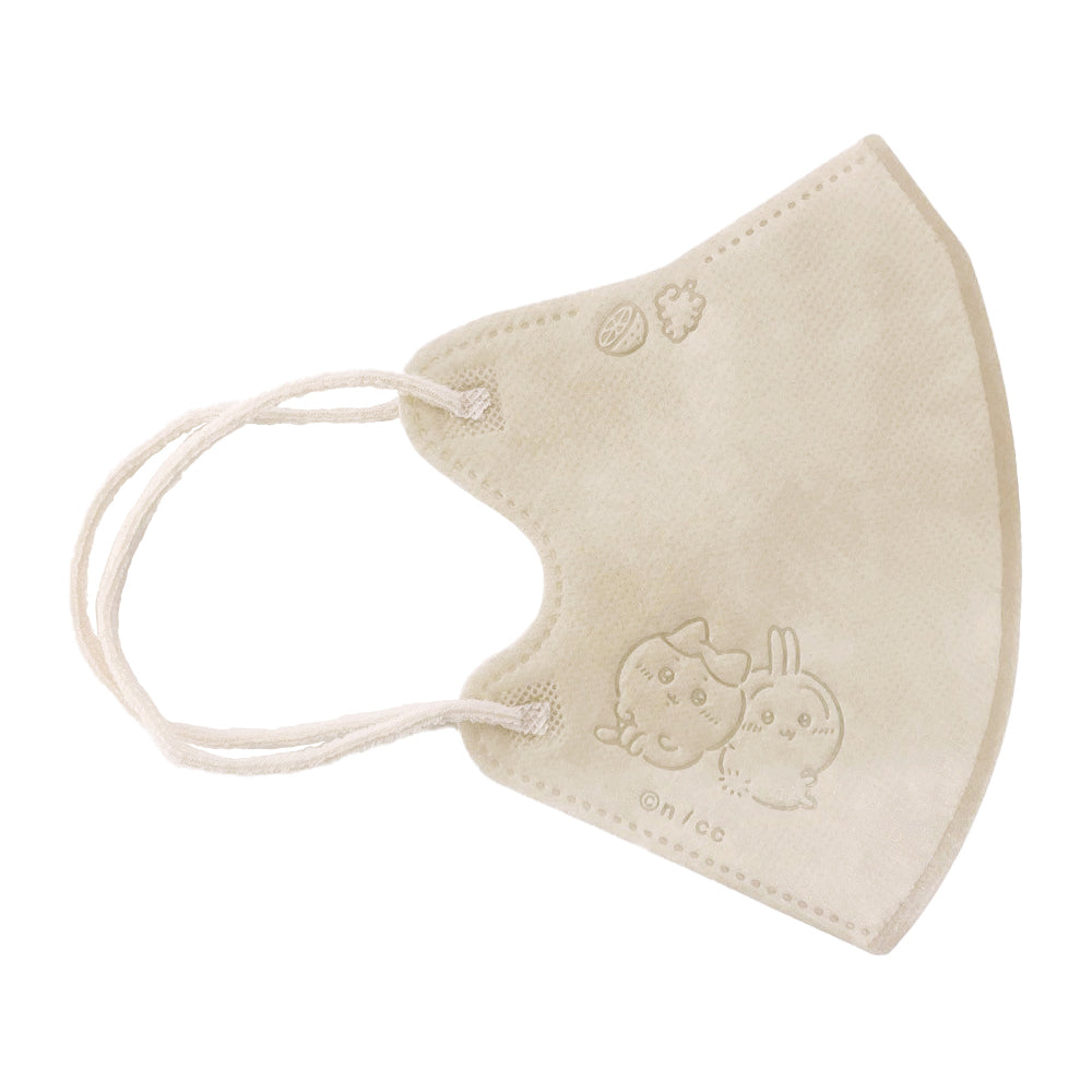 ベージュの立体不織布マスクに、キャラクターのエンボスデザイン付き♪