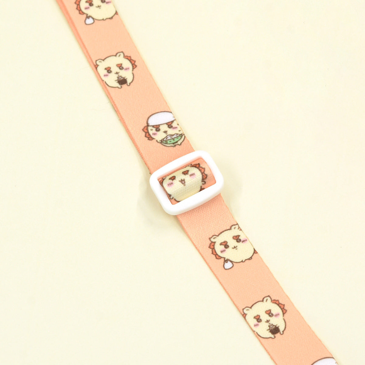 お好みの長さに調節できる長さ調節スライダー付きです。ストラップの長さは最短約43cm~最長約50cmです。強い力が加わった際に分離する安全パーツ付きです。