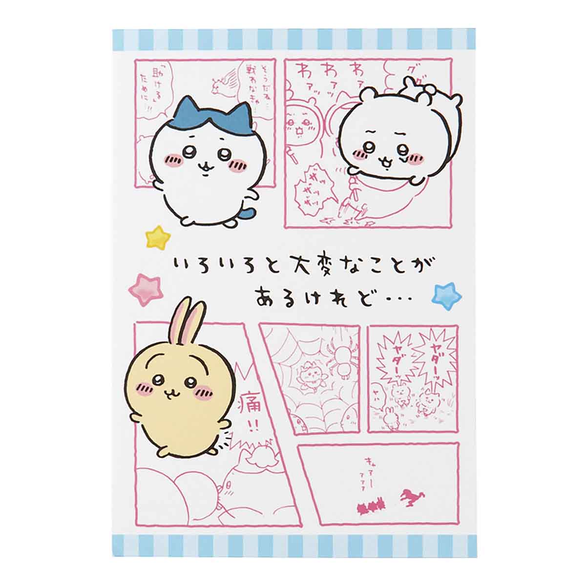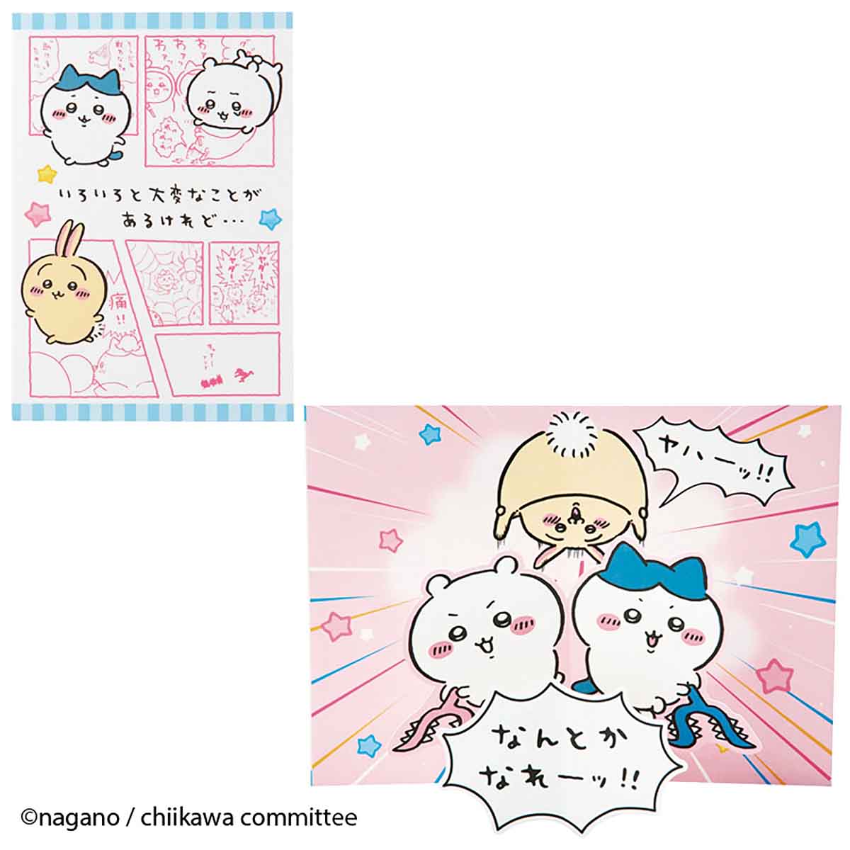 When you open the card, along with the phrase 'Somehow, it'll work out!!', Chiikawa and Hachiware holding a sasumata jump out loudly.