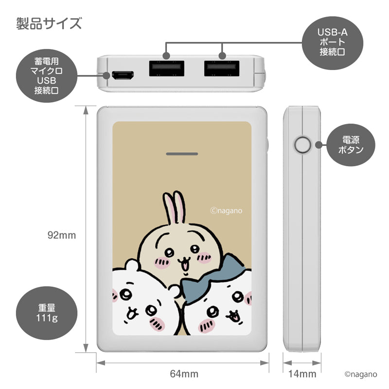「Chiikawa」、「Hachiware」、「UsagiA mobile battery appears.