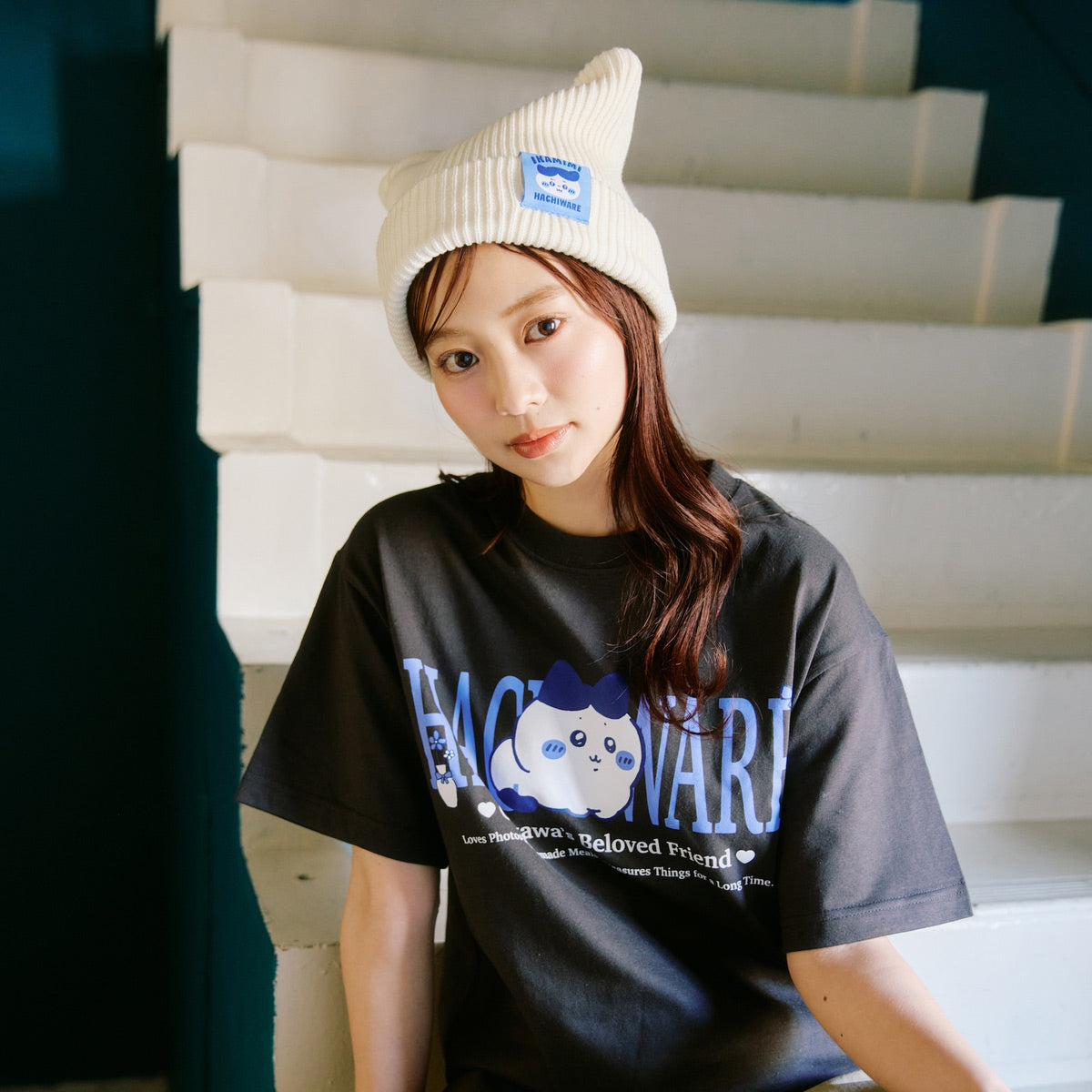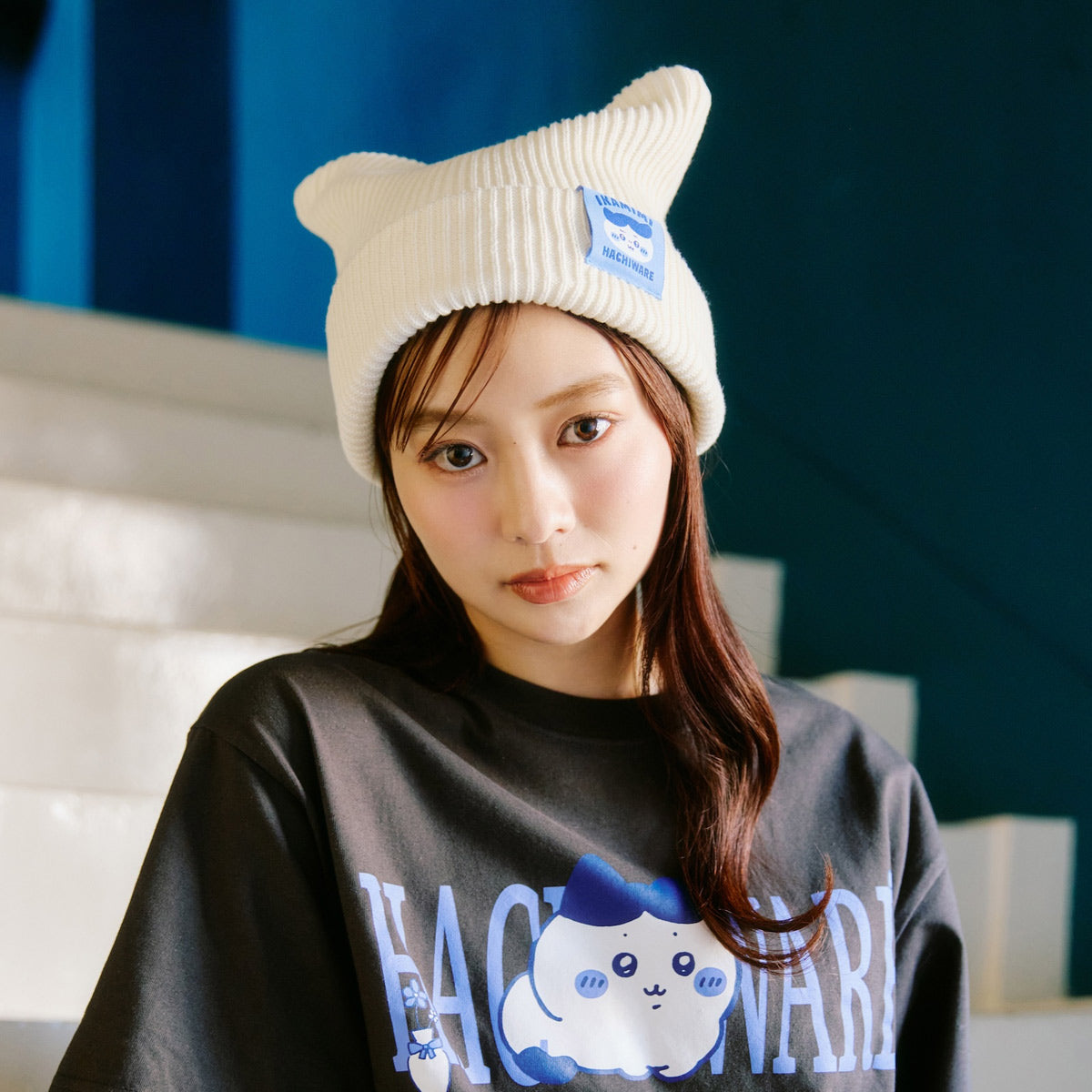 치이카와 니트 모자 (가르마 시리즈 / 화이트)