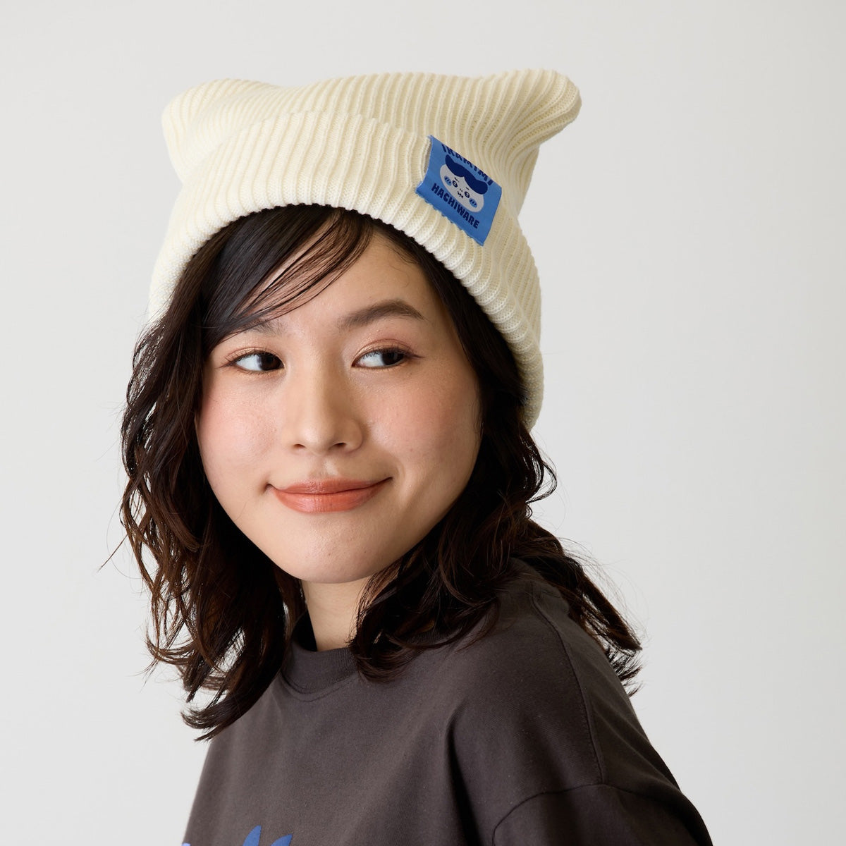 스퀘어형 니트 모자. 쓰면 고양이 귀 모양으로 변하는 귀여운 아이템입니다.