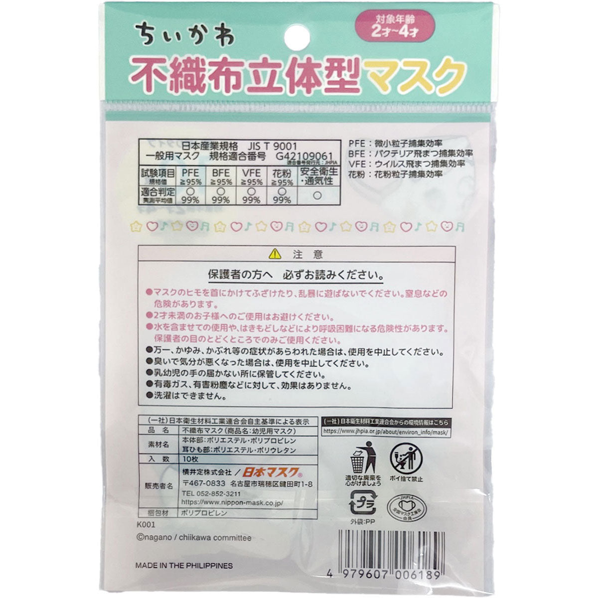 마스크 본체에는 귀여운 치이카와들이 프린트되어 있습니다. 귀끈도 부드러워서 귀가 아프지 않습니다.