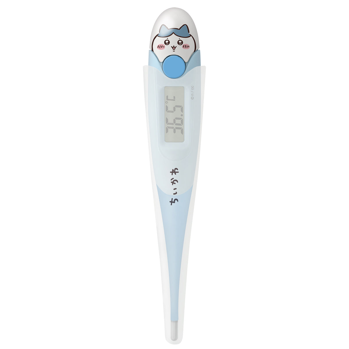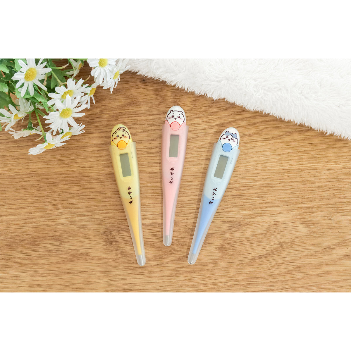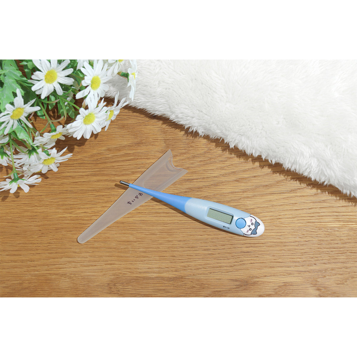 치이카와의 체온계가 등장! 선단이 구부러져 있어서 부드럽게 쉽게 맞춤.