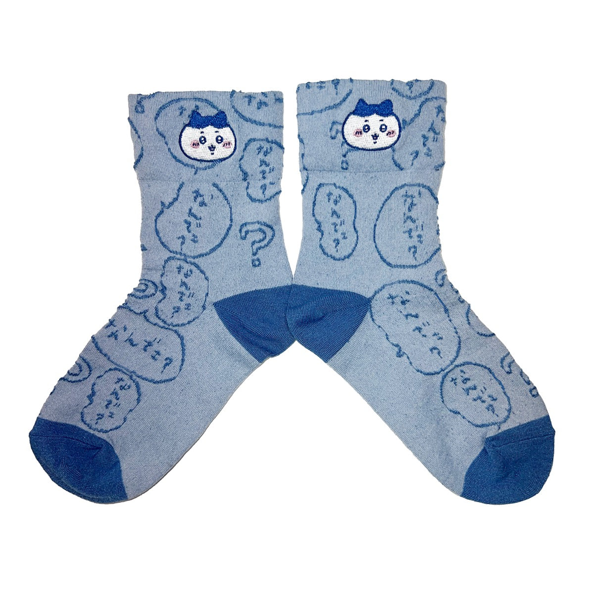 치이카와 플로트 자수 크루 양말 (하치와레 블루) 여성용
