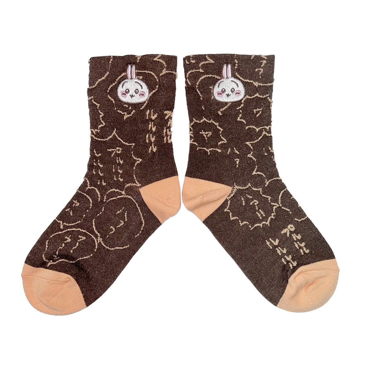 치이카와 플로트 자수 크루 양말 (우사기 브라운) 여성용
