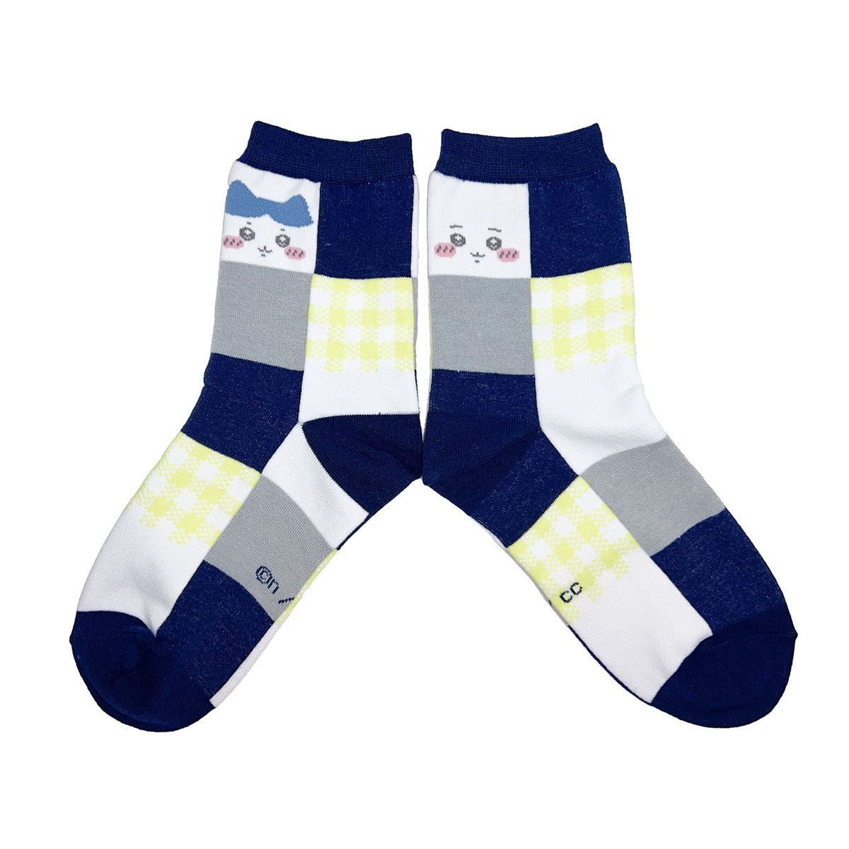 치이카와 블록 체크 크루 양말 (치이카와 & 하치와레 네이비) 여성용