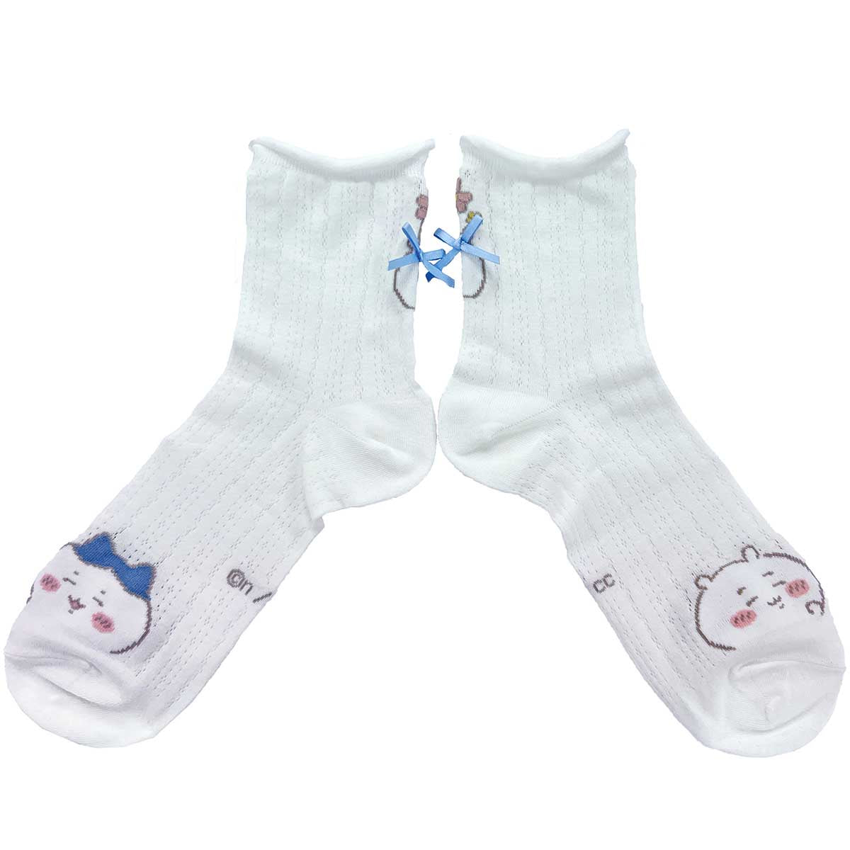 치이카와와 하치와레의 추억을 칭찬하는 리본이 레그 후면에 배치된 크루 삭스입니다.