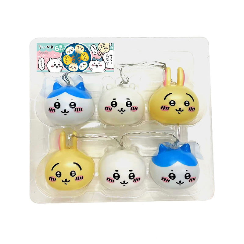 치이카와, 하치와레, 우사기의 페이스형 LED 라이트가 6개 연결된 인테리어 라이트입니다.