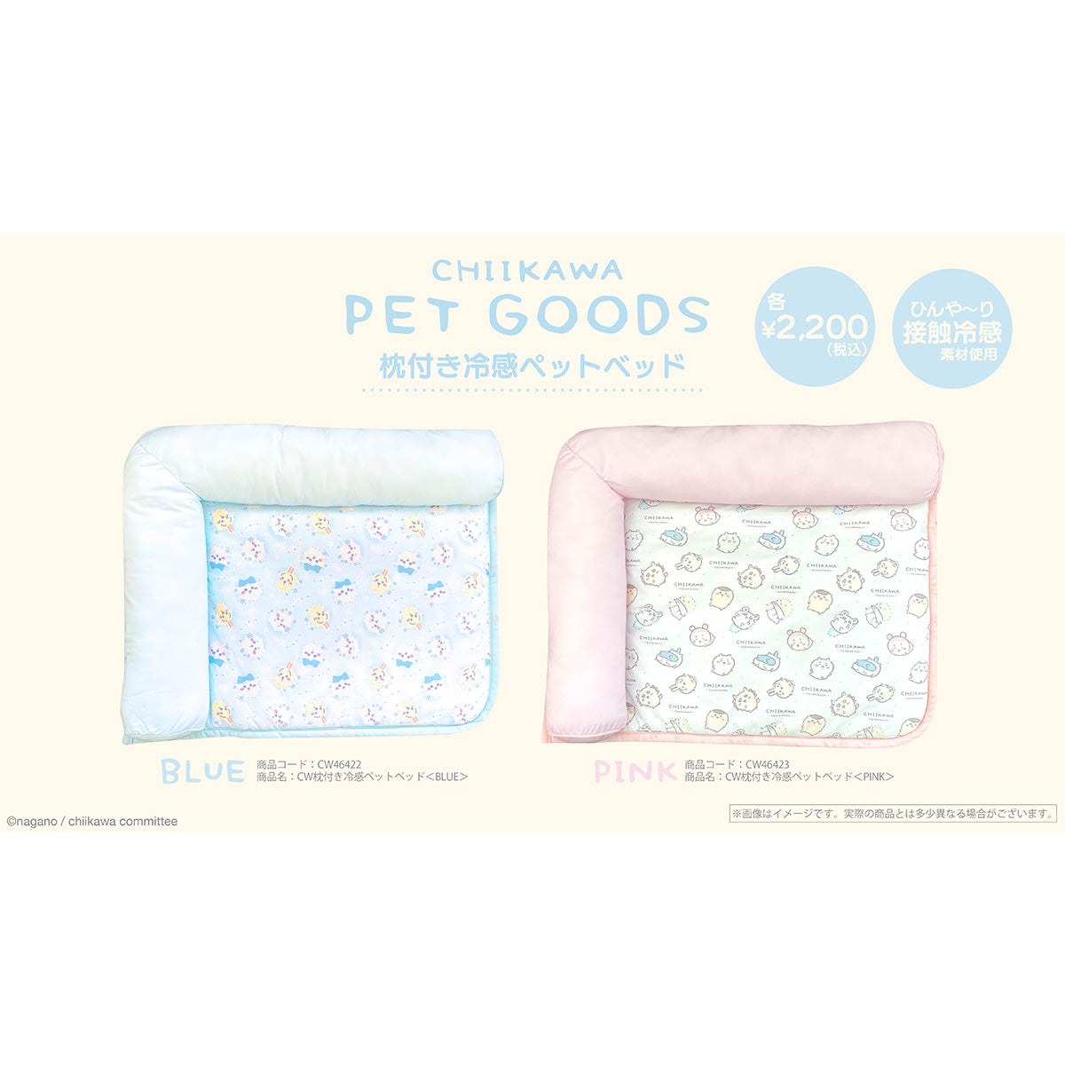 치이카와 베개 달린 냉감 펫 베드 (블루)