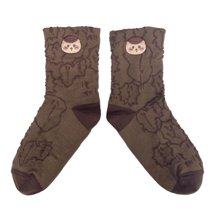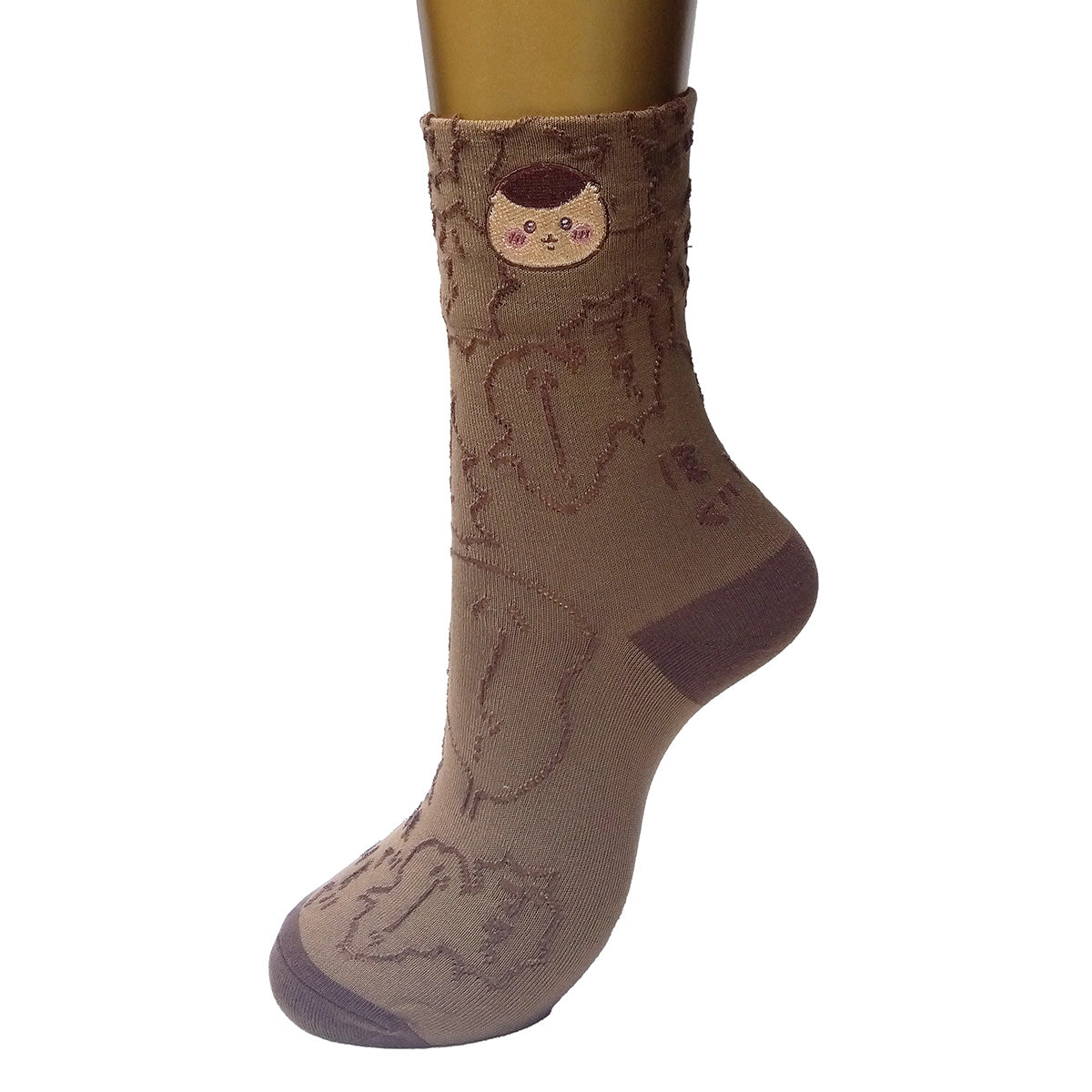 치이카와 플로트 자수 크루 양말 (쿠리만쥬 브라운) 여성용