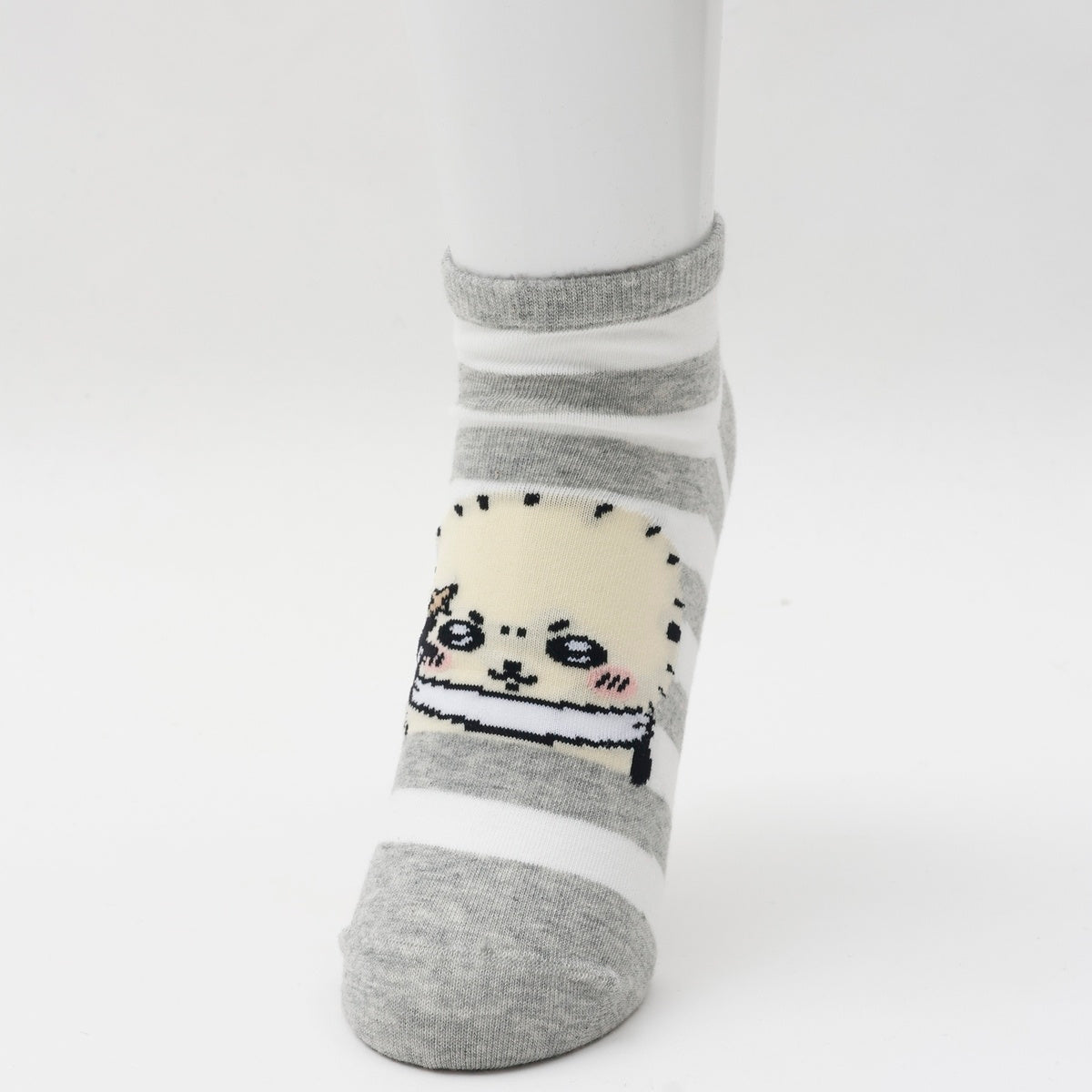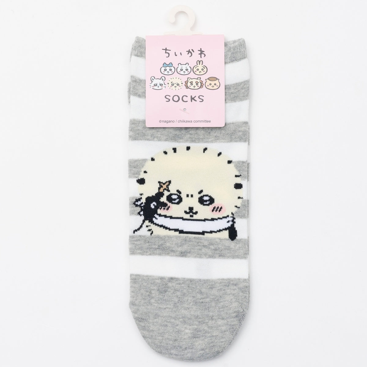ちいかわ クルーソックス ラッコピース グレーボーダー
