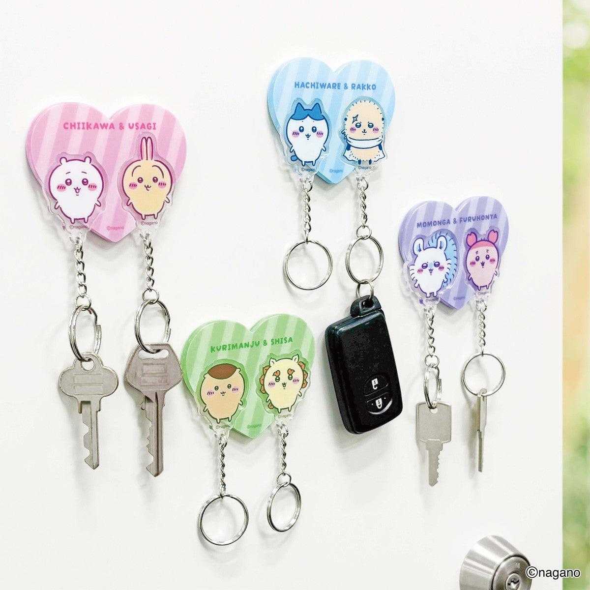 フレーム裏面がマグネットシートなので、ドアや壁に貼り付けOK!お家に着いたらキーホルダーをフレームに戻して「ただいま」しよう♪