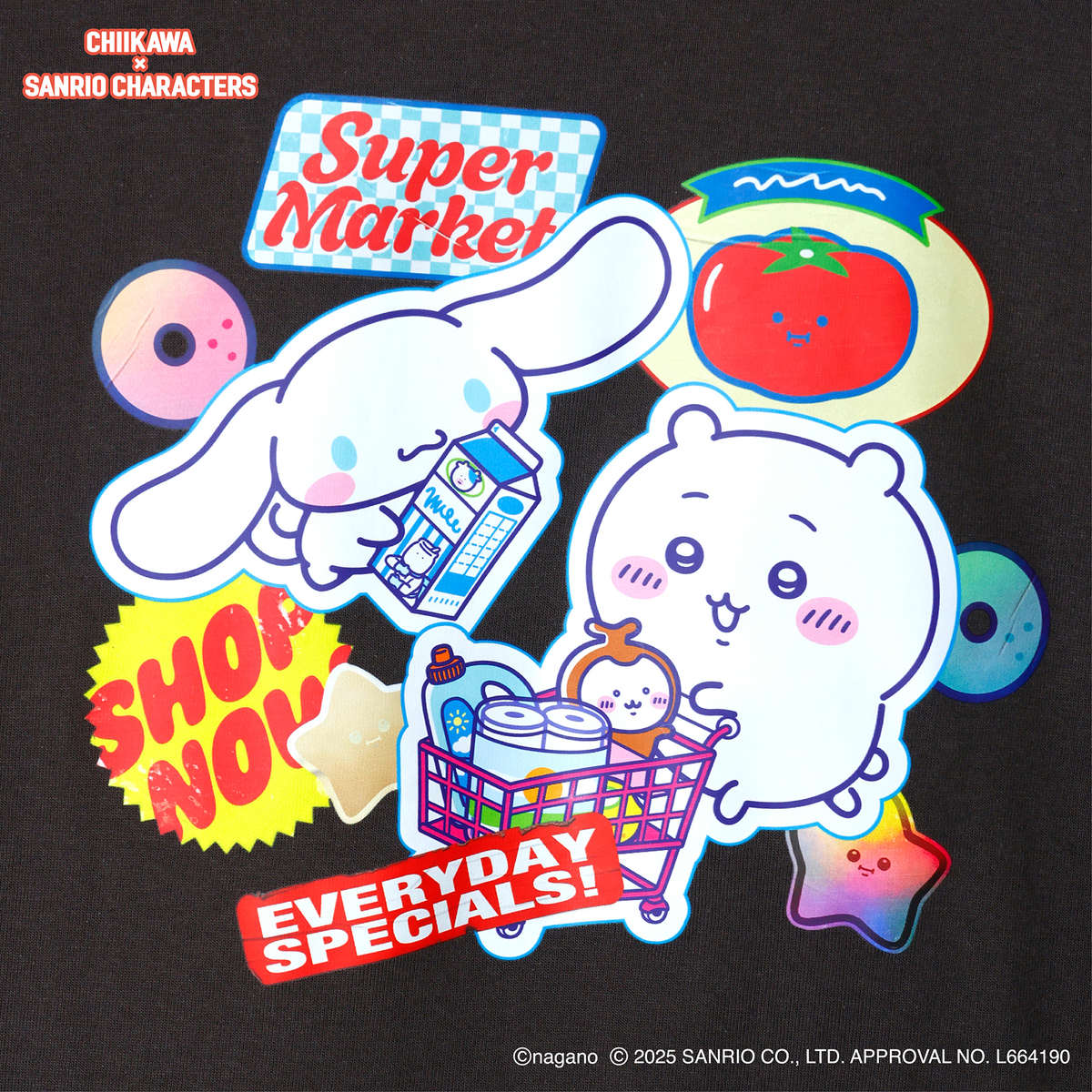 - 吉伊卡哇 × 三麗鷗角色 T恤 超市 吉伊卡哇・大耳狗 炭黑
